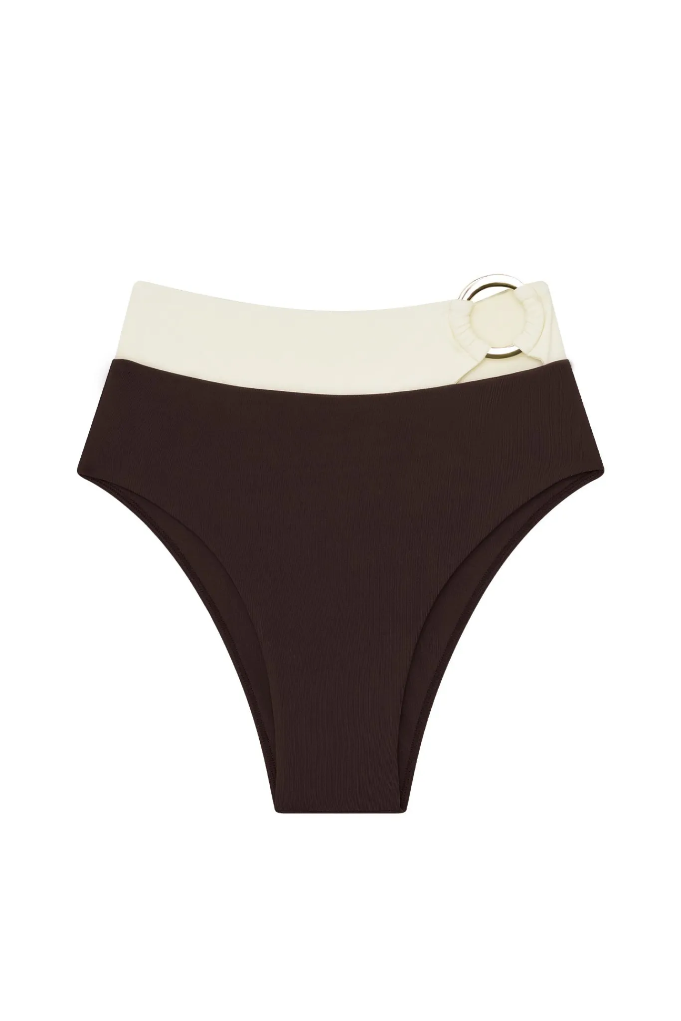 The Costa Rica Bottom offers the perfect balance of classic lines and thoughtful details. With full coverage and a high-waisted fit, it smooths and flatters in all the right places. A statement gold ring detail at the front adds just the right amount of shine.