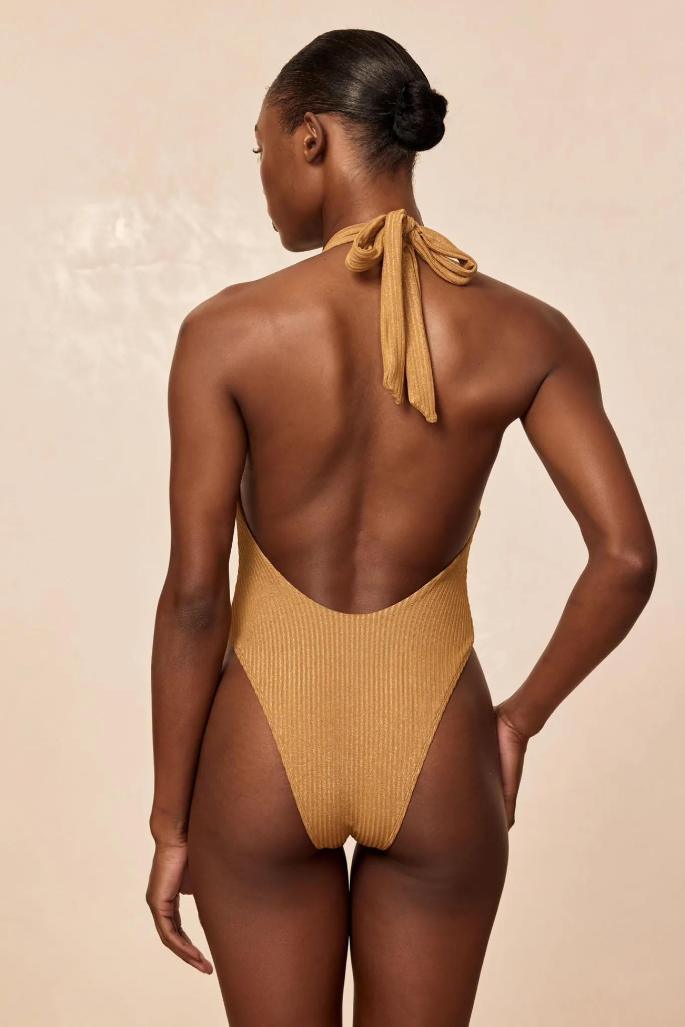 Turn heads and feel confident in the Montego One Piece. Designed for a chic look, this halter plunge one-piece drapes effortlessly, adding a luxe touch. With its sultry low back and elongating high-leg cut, it sculpts a stunning silhouette, whether you’re sipping cocktails under the sun or talking a golden hour dip.