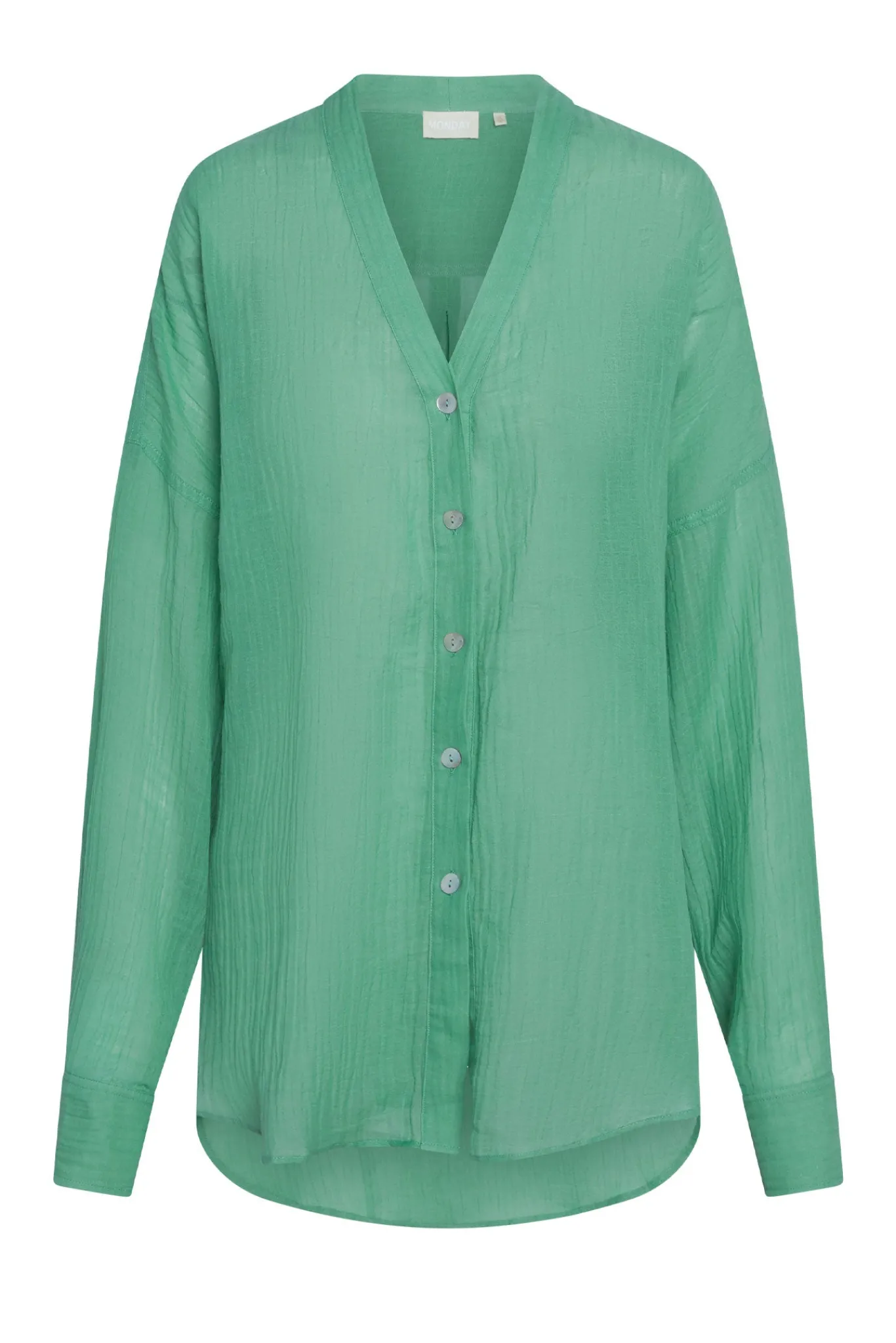 Our 100% crinkle linen is designed to develop character over time. Washing and tumble drying will enhance its natural texture, so we recommend gently reshaping and drying flat to maintain its fit. For best results and to preserve the original crinkle look, dry cleaning is recommended.