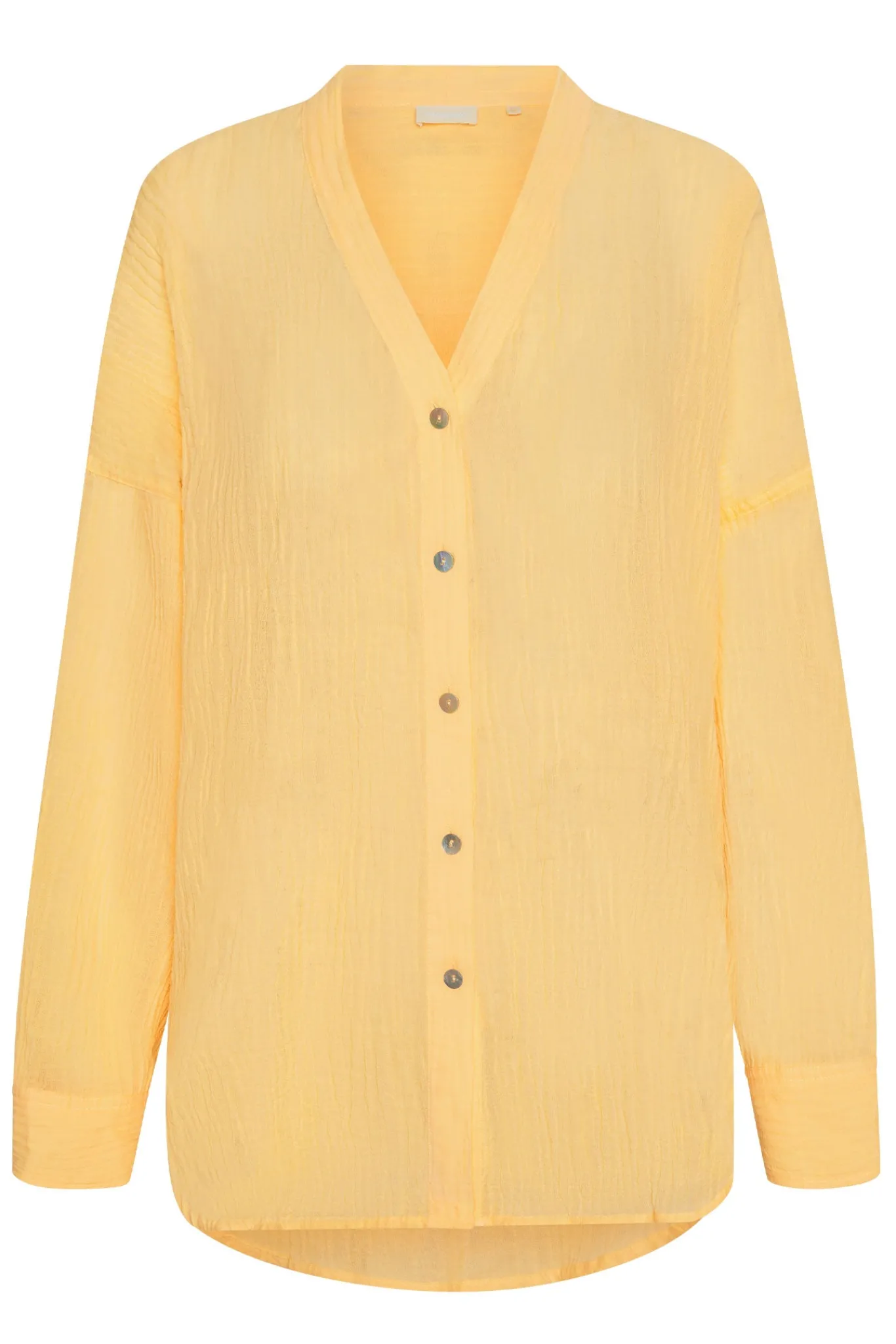 The ultimate beach to bar look can be achieved in the Barcelona Tunic. With an airy oversized fit, this transitional piece can be worn open, over your favorite swimwear or tied at the front with cute pants. Complete with side slits, flowy sleeves and center front seashell buttons.