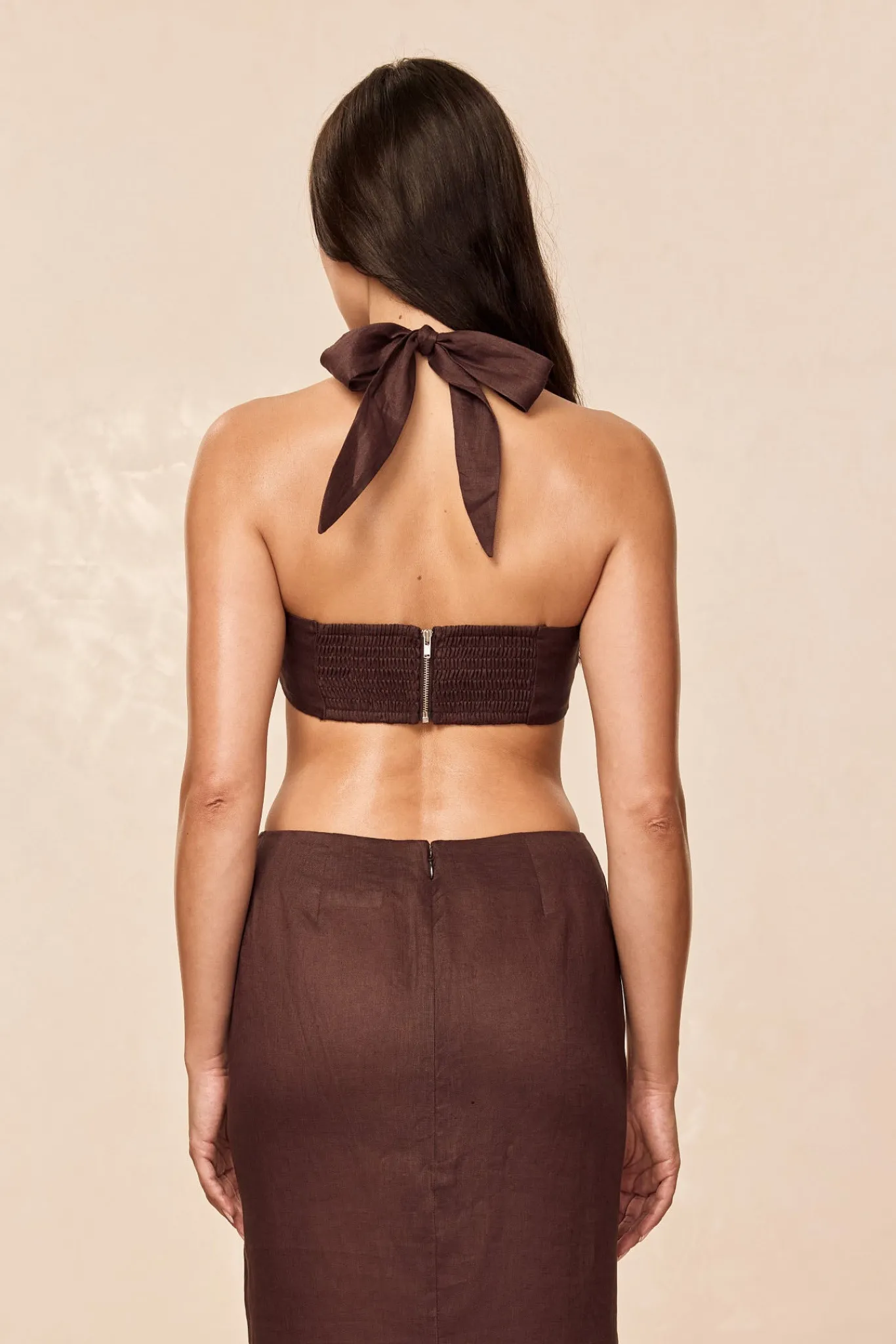 The Montserrat Top brings all the elegance of the dress into a chic, cropped style. Featuring a flattering halter neckline with adjustable ties and a lined bust for comfort, this linen top is as versatile as it is stylish. Complete the look with the Fontelina Skirt for effortless summer sophistication.