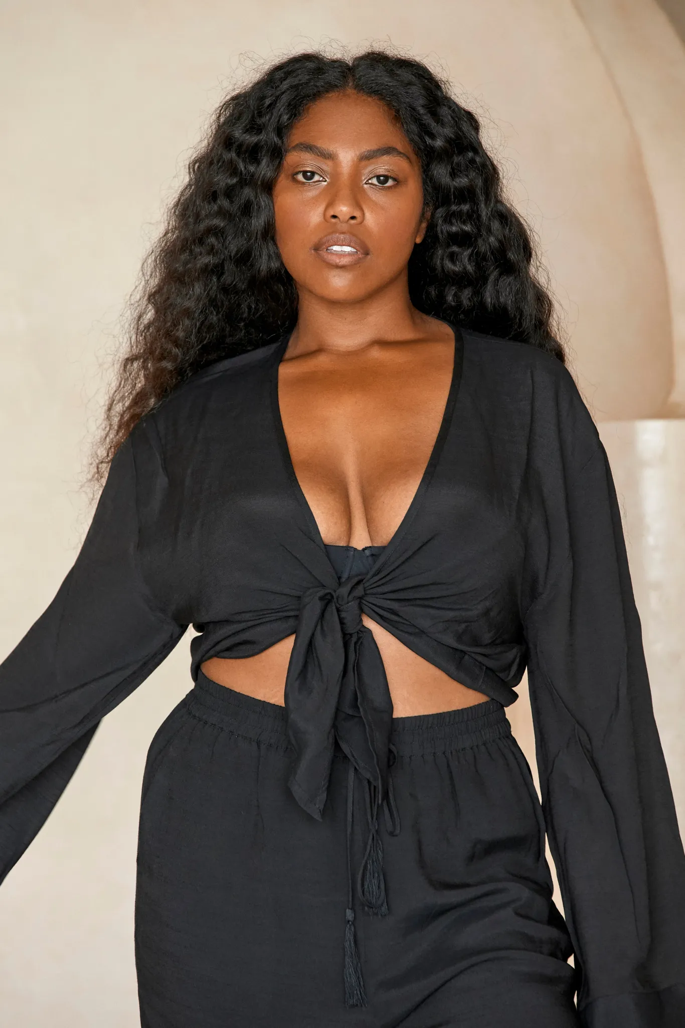 With its deep V front and elegant, billowing sleeves, the Tahiti Tie Top pairs perfectly with any bottom or easily double up as a cute crop with jeans. It ties in the front and has an elastic band hidden in the back, for that perfect fit. The picture-perfect addition to its bottom the Tahiti Pant.